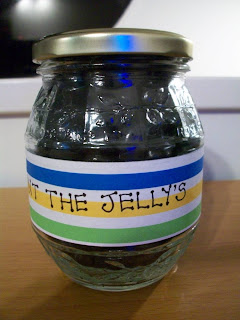 i counted out two packets of black jelly beans filled an empty jam jar. i then dressed the jar with the same free party printables design i used for the banner on day 125.